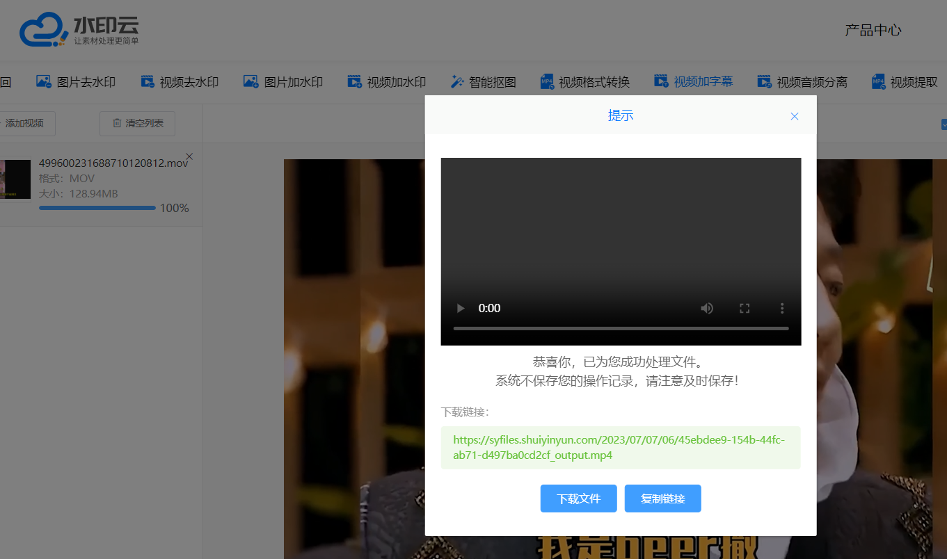 在市面上有很多视频编辑软件可以添加字幕,但是其中一款软件尤为出色,那就是水印云软件。它不仅功能强大,而且操作简单,适合各种用户使用。电脑搜索水印云进入官网,首页登陆后选择视频加字幕功能并导入你想要添加字幕的视频。上传需要添加字幕的视频文件,上传成功后选择添加字幕,然后进行确定即可!
