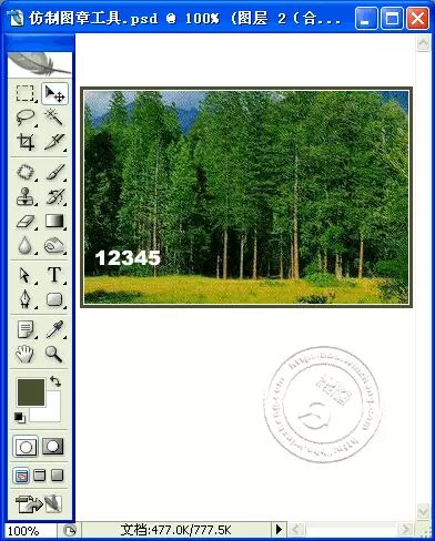 这是比较常用的方法,具体的操作是,选取仿制图章工具,按住Alt键,在无文字区域点击相似的色彩名图案采样,然后在文字区域拖动鼠标复制以覆盖文字。